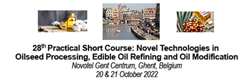 Novel Technologies in Oilseed Processing, Edible Oil Refining and Oil Modification October 20 – 21, 2022, Novotel Gent Centrum, Ghent, Belgium